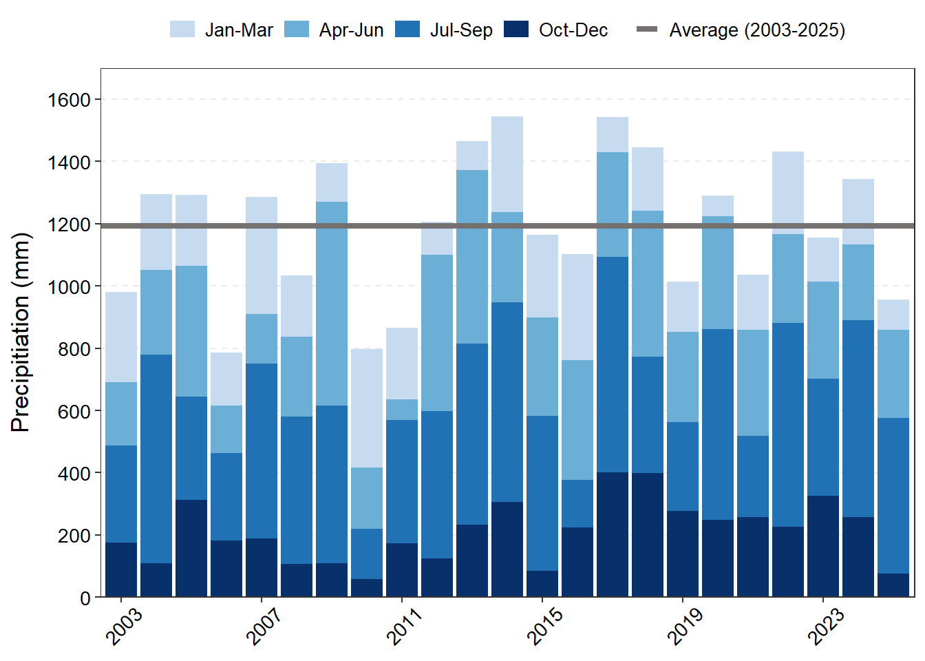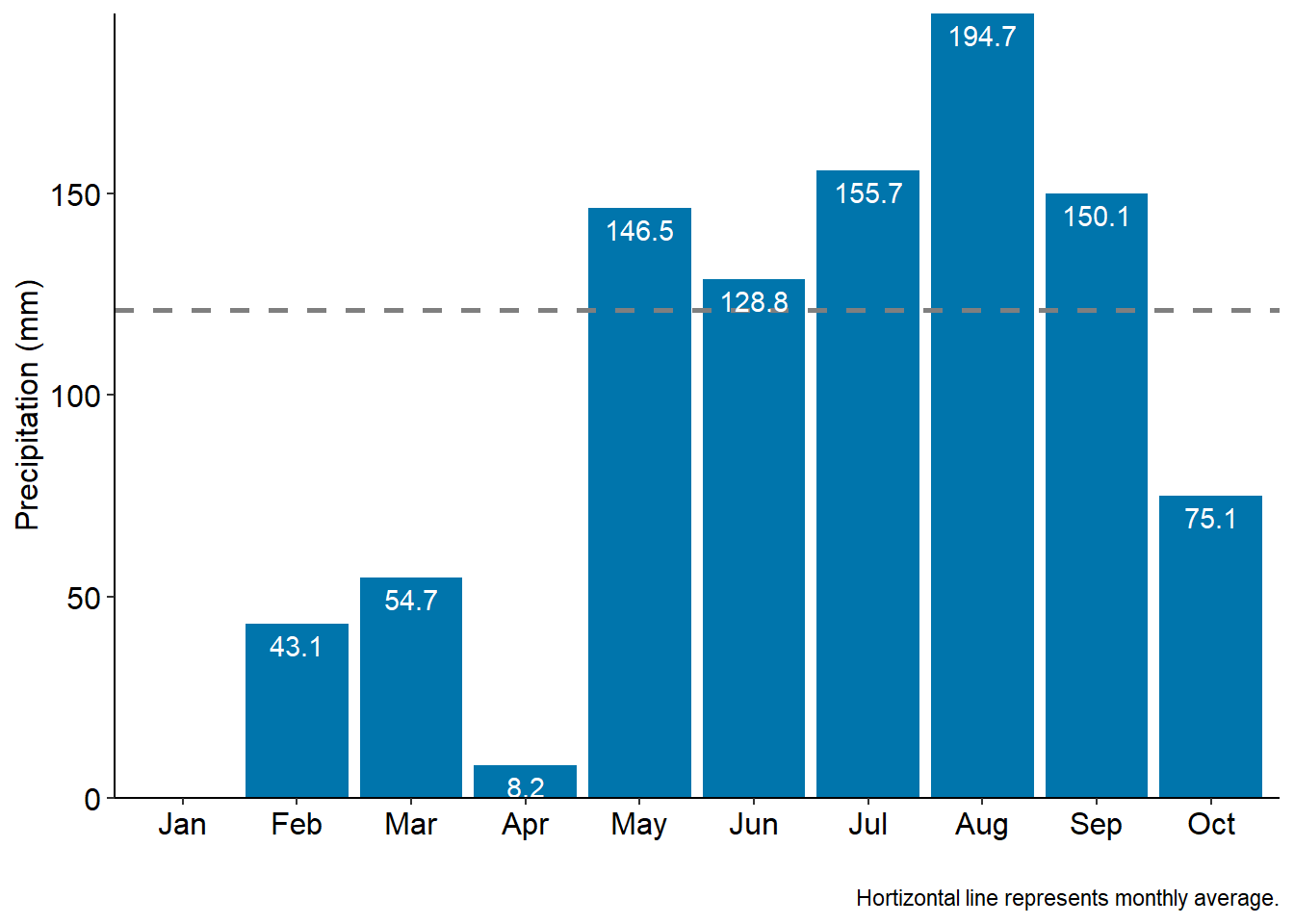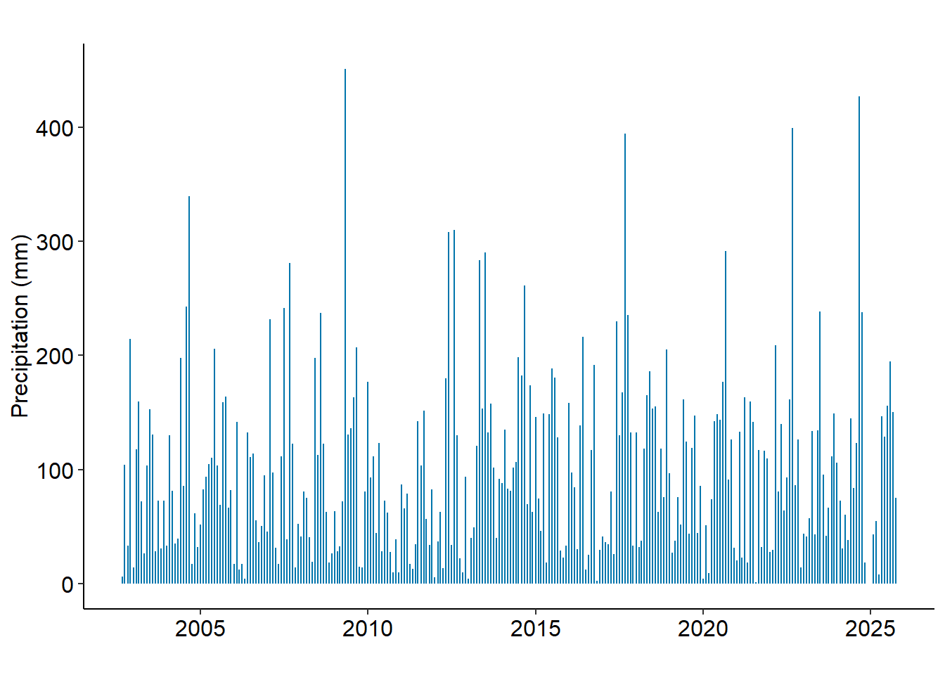 | Month | Year | Total Precipitation (mm) |